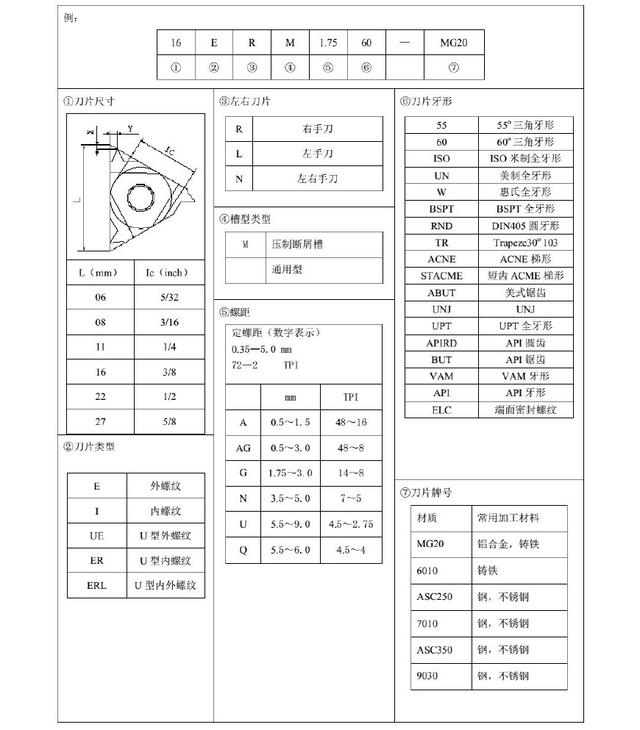 2)螺紋刀片編號規則