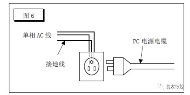 (2) 帶接地的插座連接附帶接地端子的電源電纜給PC供電。圖(6)