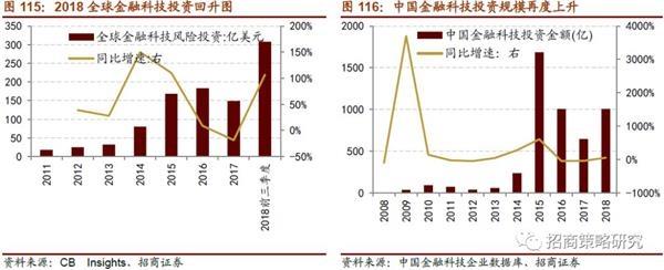 隨著(zhù)監管層政策規范政策不斷出臺,近幾年P(guān)2P、區塊鏈等過(guò)熱炒作已降溫,2017年投資冷卻期后,2018年起再度升溫。據麥肯錫報告,2018年前三季度全球金融科技風(fēng)險投資總額已經(jīng)達到308億美元,投資數額大幅增長(cháng)。CB Insights數據顯示,2018年中國已成為全球最大的金融科技投資市場(chǎng),投資總額達到255億美元,相當于2017年全球投資總額。國內中國金融科技企業(yè)數據庫同樣顯示國內金融科技投資金額自2016年下降后,在2018年出現回升,投資金額較去年增長(cháng)55%。