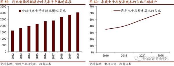 消費者提升汽車(chē)體驗的需求是車(chē)載電子快速發(fā)展的直接原因。傳統的汽車(chē)動(dòng)力系統、車(chē)身與底盤(pán)系統的發(fā)展已經(jīng)比較成熟,高級駕駛輔助系統(ADAS)和信息娛樂(lè )系統成為消費關(guān)注重點(diǎn)。ADAS系統和車(chē)載信息娛樂(lè )系統依賴(lài)于車(chē)載信息獲取系統(傳感器)、車(chē)載信息傳輸系統(射頻通信部分)、車(chē)載信息處理與控制系統(MCU等)、車(chē)載信息表達系統(顯示屏、揚聲器等)等半導體元器件。因此車(chē)載電子成本成為汽車(chē)整車(chē)成本的一個(gè)重要的增長(cháng)點(diǎn),根據智研咨詢(xún)預測2025年車(chē)載電子成本將占整車(chē)成本60%左右。