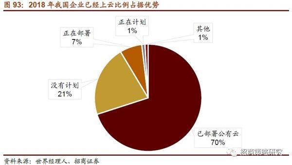據世界經(jīng)理人發(fā)布的《2018年中國企業(yè)云計算應用現狀及需求調研報告》,參與調研的2327家企業(yè)中,有70.3%已經(jīng)部署云,6.7%家企業(yè)正在部署,0.96%家企業(yè)準備部署。