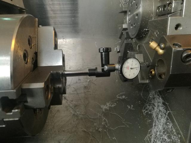 第五天,順利調整刀塔各項精度,步驟就不詳細說(shuō)了,總之,是個(gè)細活。第六天,調整主軸精度(因為車(chē)180mm長(cháng)外圓后有錐度),具體操作就不詳細介紹了,總之是比較麻煩的,需要兩人或以上相互配合。
