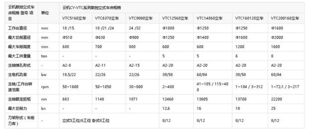 云南機床廠(chǎng)云機CY-VTC數控立式車(chē)床相關(guān)技術(shù)參數: