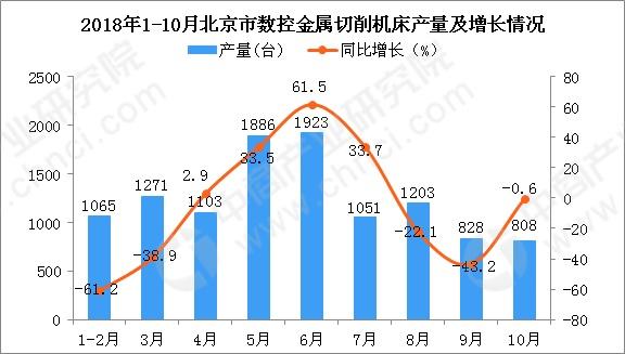 2018年1-10月北京市數控金屬切削機床產(chǎn)量及增長(cháng)情況
